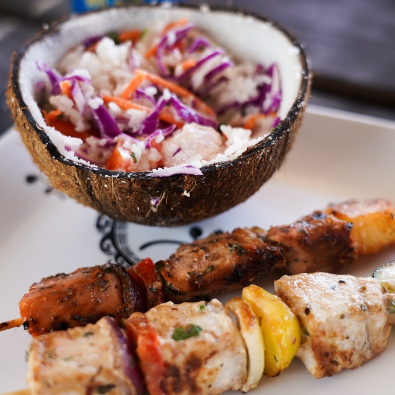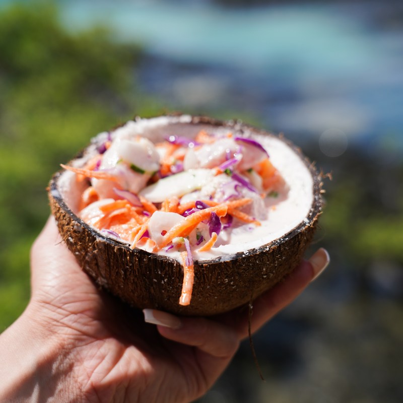 Next, we welcome you to our family’s private Motu. It is a coral island entirely at your disposal where you’ll enjoy a delicious meal with fresh and local ingredients. Start by tasting the Rum of the island, you’ll love it ! Then, learn how to make the Tahitian raw fish salad with coconut milk, try some chicken kebabs and grilled fish and fruits from the island. Depending on what our local fishermen catch (swordfish, Opah or Meka), you’ll enjoy fresh fish directly caught from the Polynesian waters. After lunch, appreciate the calm and tranquility in the shade, on the beach or discover more by swimming around this beautiful Motu.